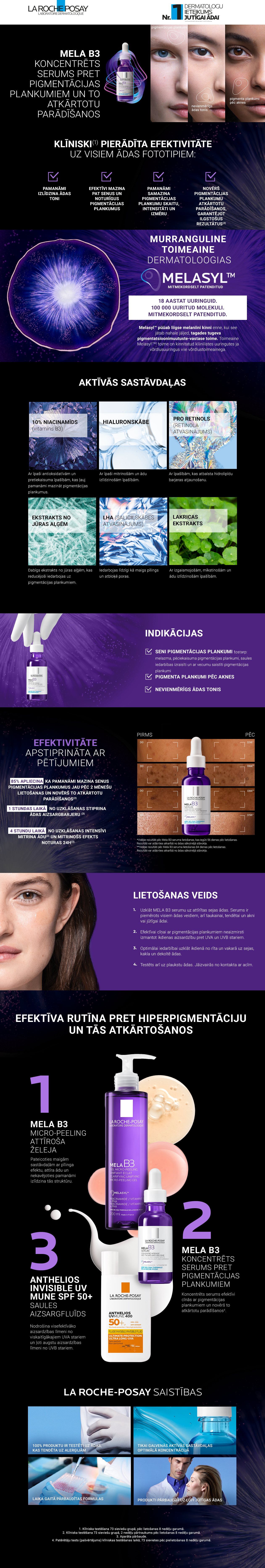 Pēc 2 nedēļām tumšo plankumu redzamība, krāsa un skaits izskatās samazināts. Pēc 4 nedēļām pat noturīgi tumšie plankumi izskatās mazāki. Novērš plankumu atkārtotu veidošanos. Efektivitāte ilgstošiem rezultātiem.**